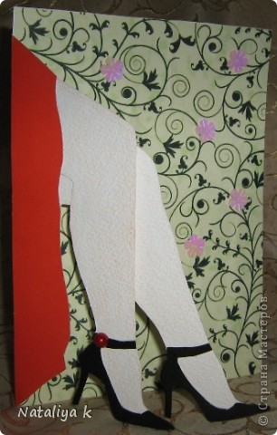 Тип работы Событие Техника Материал Открытка Аппликация: Ах, эта прелесть стройных женских ножек! Бумага, Картон, Пайетки 8 марта, День рождения